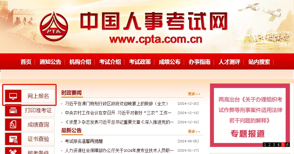 网上注册:考生需要在规定时间内登录中国人事考试网进行网上注册。