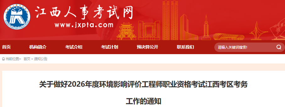 关于做好2026年度环境影响评价工程师职业资格考试江西考区考务工作的通知