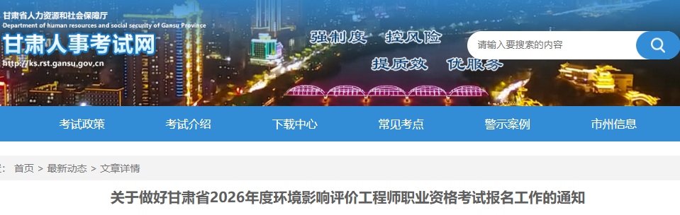 关于做好甘肃省2026年度环境影响评价工程师职业资格考试报名工作的通知