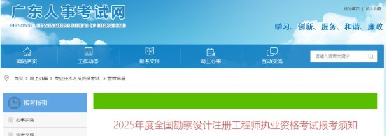 根据住房和城乡建设部执业资格注册中心、人力资源和社会保障部人事考试中心《关于2025年度全国勘察设计注册工程师执业资格考试考务工作的通知》(建注〔2025〕18号)和广东省人力资源和社会保障厅《关于广东省人力资源社会保障系统2025年度专业技术人员职业资格考试工作计划及有关事项的通知》(粤人社函〔2025〕26号)要求,为方便广大考生报考该项考试,现将有关事项告知如下。
