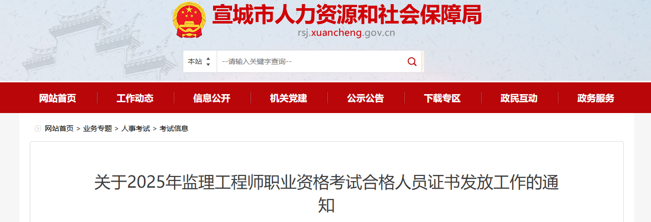 8月13日,宣城市人力资源和社会保障局发布了“关于2025年监理工程师职业资格考试合格人员证书发放工作的通知”,本次证书发放可以授权他人代领或快递邮寄,同一单位内考生也可授权单位统一代领,代领人能提供考试成绩合格者身份证原件即视为已被授权。