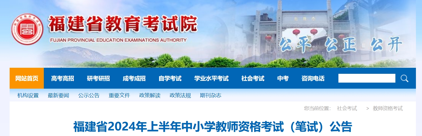 福建省教育考试院近日发布《福建省2024年上半年中小学教师资格考试(笔试)公告》,公告中明确了2024年上半年福建教师资格笔试报名时间为1月12日至1月15日17:00截止,提醒考生及时报名,更多报考信息请仔细阅读公告。