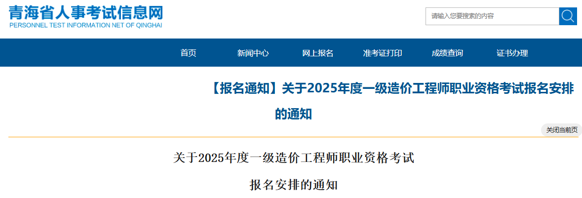 2025年青海省一级造价工程师考试报名安排通知原文如下: