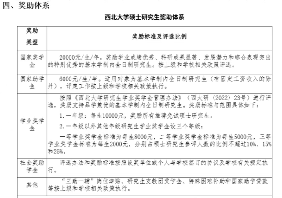 西北大学在2023考研招生简章中的硕士研究生奖助体系,说明了新生奖学金只有推免生才有,不涉及统考生。