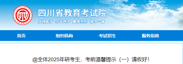 2024年12月9日,四川省教育考试院发布《@全体2025年研考生,考前温馨提示(一)请收好!》通知,提醒2025年研考生做好考前准备,小编将详情整理如下,请参阅。