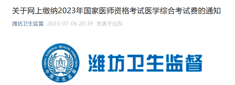 关于网上缴纳2023年国家医师资格考试医学综合考试费的通知