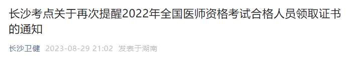 长沙考点关于再次提醒2022年全国医师资格考试合格人员领取证书的通知
