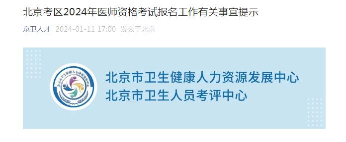 京卫人才官方公众号2024年1月11日发布了《北京考区2024年医师资格考试报名工作有关事宜提示》,从中了解到,2024年北京临床执业医师资格考试报名时间为2024年1月22日至2月4日24时。