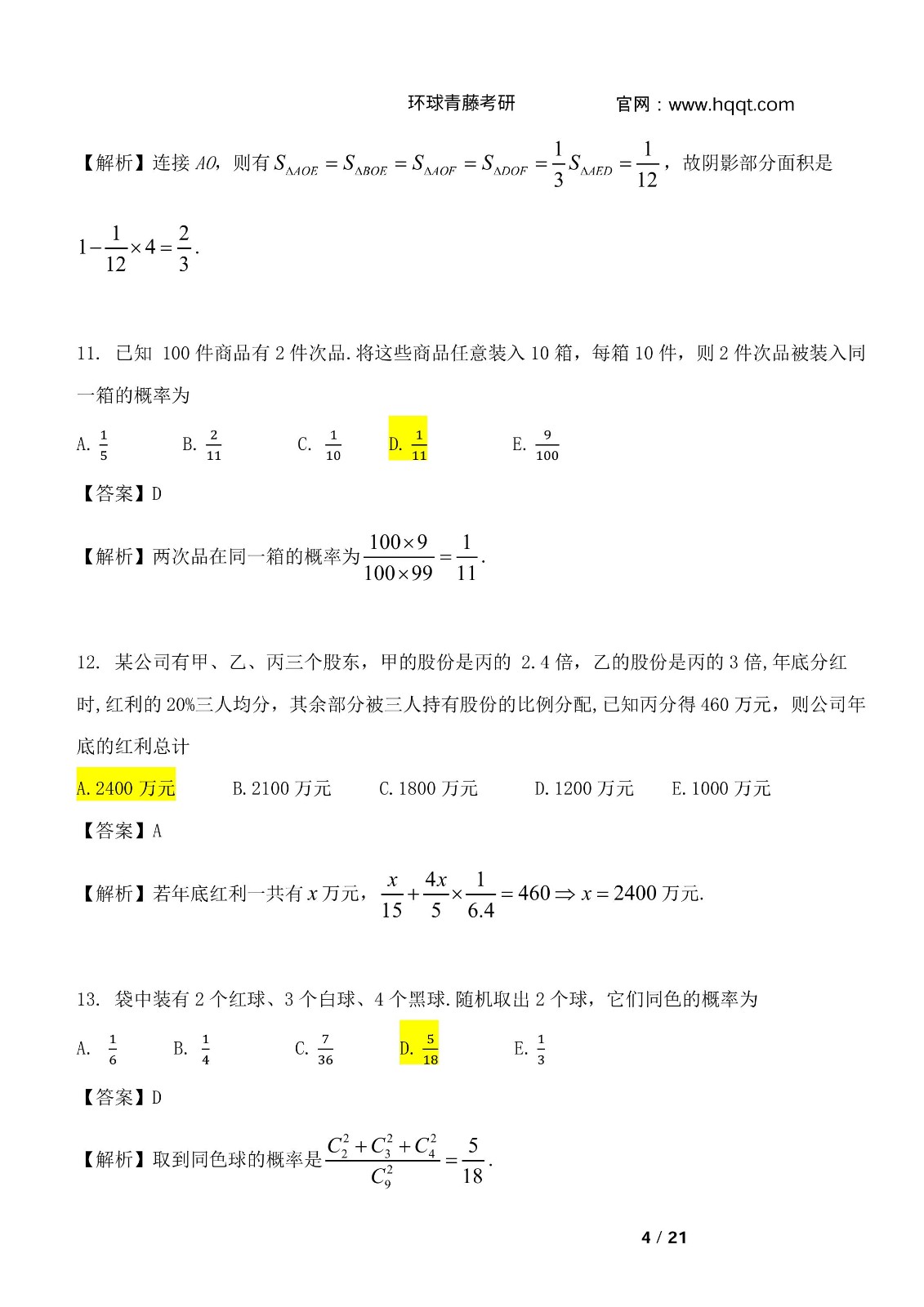 2025年《管理类综合能力》真题答案解析——问题求解部分