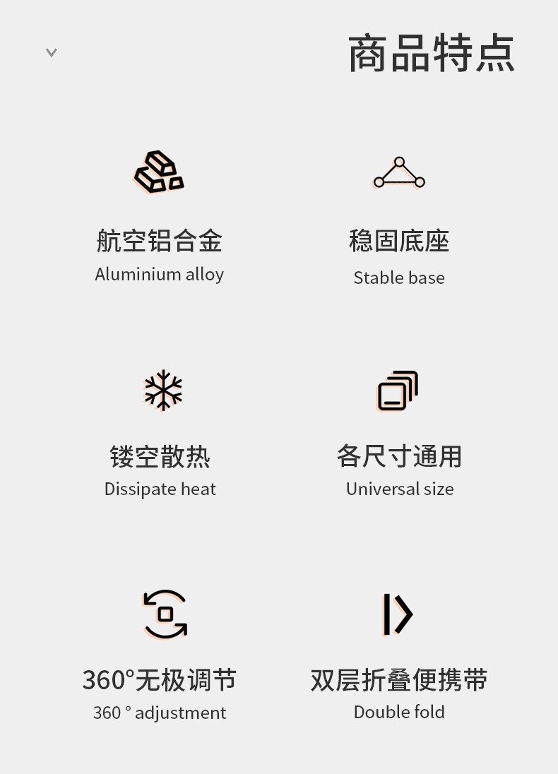 这是一款收纳方便,外出可带的一款平板支架而且这款产品的细节做的也很好,颜色也很百搭分为太空银、航空黑两款颜色为了追剧颈椎不再疼,为了追剧手机有地方放的前提又可以不为充电而烦恼,追剧不遮挡字幕,工作用着电脑的朋友建议买,这一款支架可以更好的爱护我们的颈椎,毕竟自己不对自己好,还指望谁,还等什么,领券并购买!