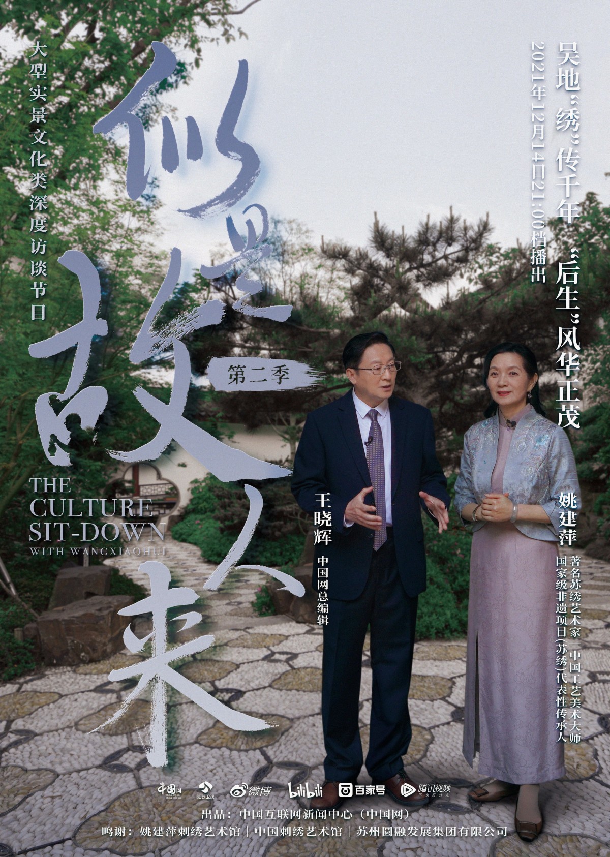 一幅美轮美奂的绣品究竟如何诞生?一幅幅国礼背后有怎样的传奇故事?苏绣历经两千年魅力生生不息的密码究竟在哪里?12月14日晚21:00黄金档,由中国网制作的大型实景文化类深度访谈节目《似是故人来》第二季,邀你与中国网总编辑王晓辉和文化解惑人姚建萍一同走进苏州,走近苏绣,探讨苏绣的历史起源、传承脉络以及未来发展,体验苏绣的传统技艺和时尚文化。该节目将在中国网、江苏卫视、新浪微博、B站、百度百家号、腾讯视频等平台同步播出。