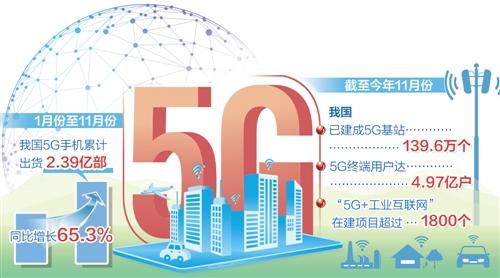 我国5G网络建设和应用正加速推进。截至今年11月份,已建成5G基站139.6万个,5G终端用户达到4.97亿户,“5G+工业互联网”在建项目超过1800个。