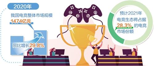 用户规模是产业发展的基础。《报告》认为,疫情以来众多传统体育赛事停摆,电竞赛事则开启线上赛并举办世界性赛事,这带来了电竞观赛用户的进一步扩张,2020年电竞用户规模达到5亿。“电竞用户群体随着年龄增长以及消费能力不断提升,未来市场空间会越来越大。”中国信息通信研究院行业研究员董千洲说。
