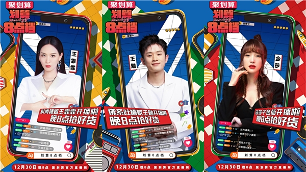 12月30日,聚划算上线全新直播栏目《划算8点档》,创意打造明星直播真人秀综艺,首推官店联播创新模式,通过聚划算官方直播间的中心化组织,实现对六大品牌直播间的精准流量扶持,同时以娱乐化的直播内容,为品牌打造跨年破圈声量。这是《划算8点档》的首次亮相,也是聚划算跨年直播的高光时刻。未来每晚8点,聚划算都会为消费者带来数个精选品牌直播间的极致划算好货。