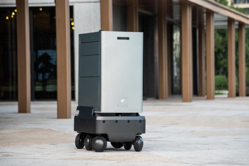 首先出场的是名叫hachi delight的智能物流机器人。它可以完成室外到室内的送货流程,其中包括自动规划路线、自主唤醒地库道闸、自主呼叫电梯上楼;来到业主家门口,它会自动拨打电话通知业主开门取件。在疫情期间,它承担了无接触配送工作,极大的方便的社区业主。