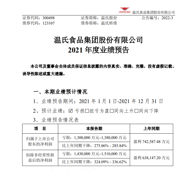 此外,温氏股份、上海电气等公司同日晚间公告大额减值。其中,温氏股份2021年预计亏损130亿-138亿元,上年同期盈利74.26亿元。报告期内,公司摊销股权激励费用约5亿元,对目前存栏的消耗性生物资产和生产性生物资产初步计提了减值准备约25亿元。