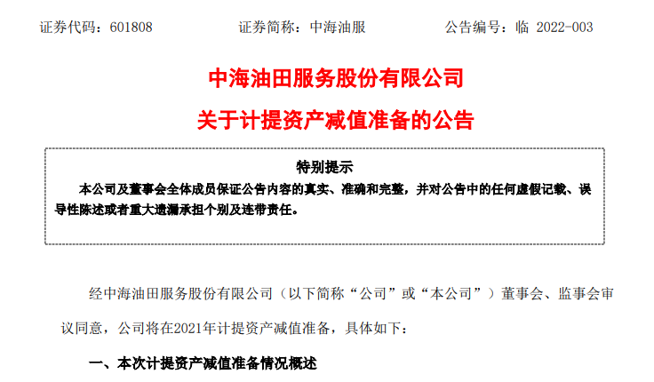 记者注意到,中海油服2020年报中也有计提大额资产减值的动作。