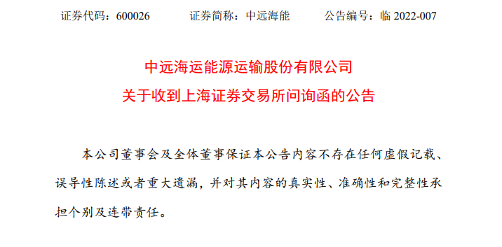 中远海能:对船舶资产计提减值准备约49.6亿元