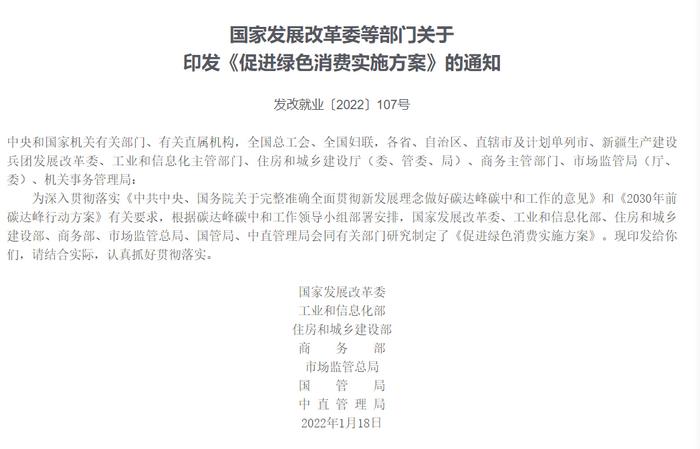 中新财经1月22日电(谢艺观 左雨晴)近日,国家发改委等七部门印发《促进绿色消费实施方案》(以下简称《方案》),倡导合理、适度购买衣物,探索实行缓解城市交通拥堵停车费政策……条条跟你的消费、钱袋子有关!