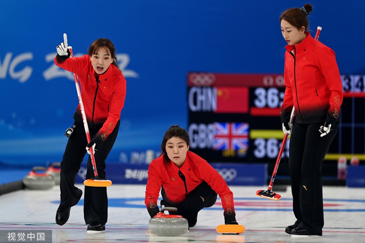 2022年2月16日,北京,2022北京冬奥会女子冰壶循环赛第10轮,中国8-4战胜英国