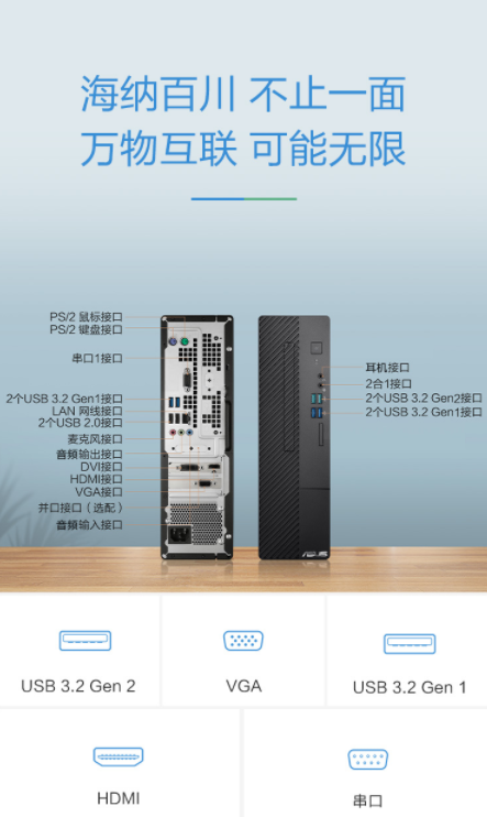 会议室是企业必不可少的重要办公场所,无论是项目沟通、方案讲解、员工培训、报告总结等工作都需要在会议室进行。而一个好的多媒体展示方案,则能让会议收获事半功倍的效果。相较动辄上万的智能会议办公系统而言,电视或投影仪+电脑主机的组合更适合中小型会议室,同时也是很多中小企业员工最常见、最实用、更具性价比的智能办公方案。华硕出品的碉堡S5台式电脑主机小巧不占地,在拥有十种类型的外设端口,以及支持无线WIFI的条件下,连接电视机或投影仪后,即可组成稳定的智能办公系统,无论是用来开视频会议、播放ppt或浏览网页、或是日常office软件都足够使用,是一款非常不错的会议主机选择。