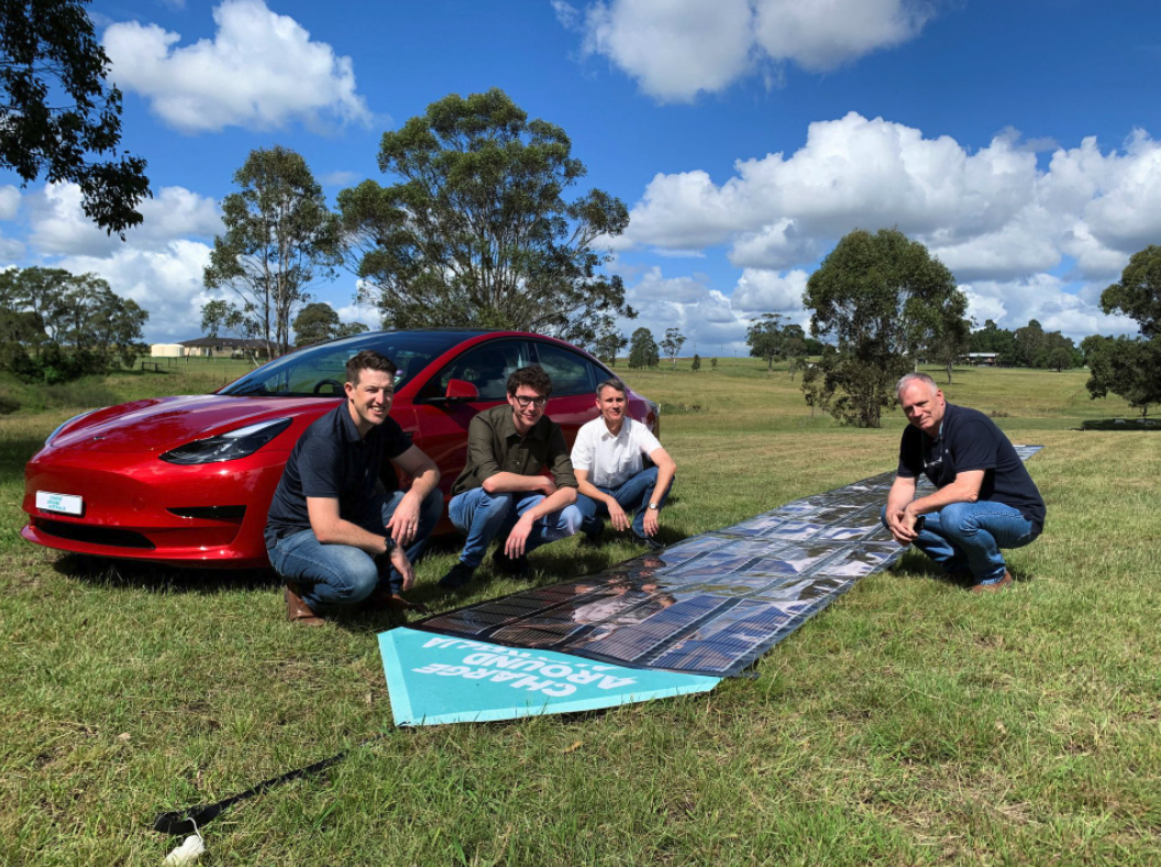 这个“环绕澳大利亚充电项目”(CAA) 将用该团队的 18 块印刷塑料太阳能电池板为特斯拉电动汽车提供动力,每块长 18 米。当特斯拉汽车需要充电时,它们就会在汽车旁边铺展开,吸收阳光。在这 84 天的旅程中,团队计划造访大约 70 所学校,让学生们体验未来可能会是什么样。