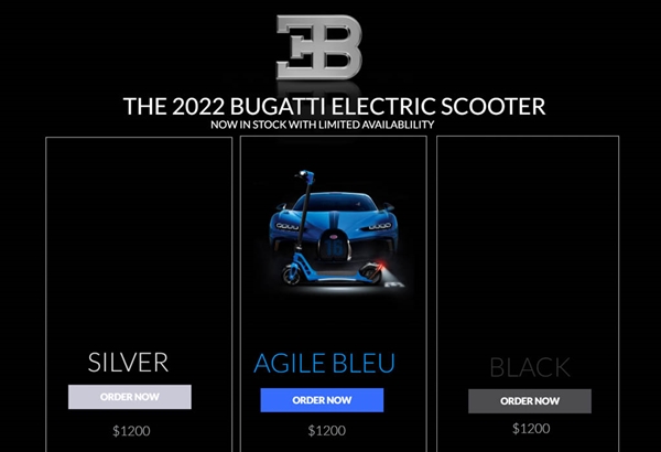 不过Costco在售的只有黑色车款,想要更多颜色可以登陆Bugattiscootersna.com,除了黑色还有银色和布加迪经典的蓝色,但是官网售价为1200美元。