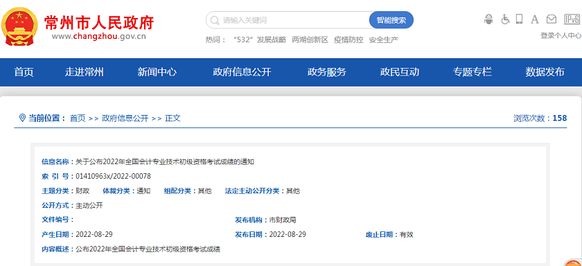关于公布2022年全国会计专业技术初级资格考试成绩的通知