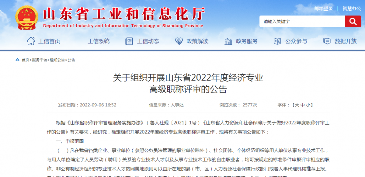 近日,山东省工业和信息化厅发布了《关于组织开展山东省2022年度经济专业高级职称评审的公告》,明确了2022年山东高级经济师职称评审报送材料在9月30日截止,逾期将关闭系统,不再受理申报。