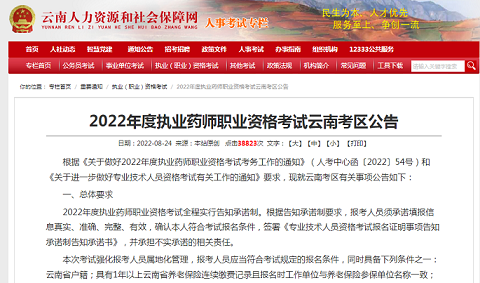 若想了解《2022年度执业药师职业资格考试云南考区公告》有关内容,可进入云南人事考试网查阅。