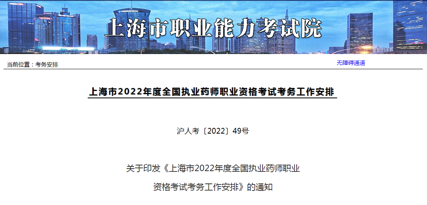 近日,上海市职业能力考试院发布了《上海市2022年度全国执业药师职业资格考试考务工作安排》,通知里指出上海市2022年执业药师考试报名入口将于9月8日16点关闭,有意愿参加考试的考生请尽快报名。