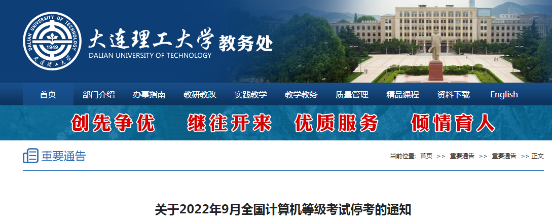 2022年9月辽宁省大连理工大学全国计算机等级考试停考