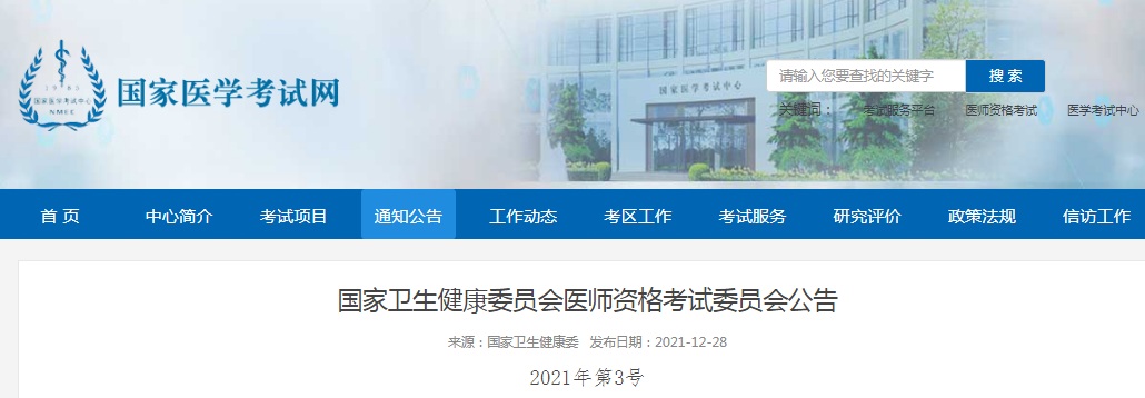 国家医学考试网发布的《国家卫生健康委员会医师资格考试委员会公告》