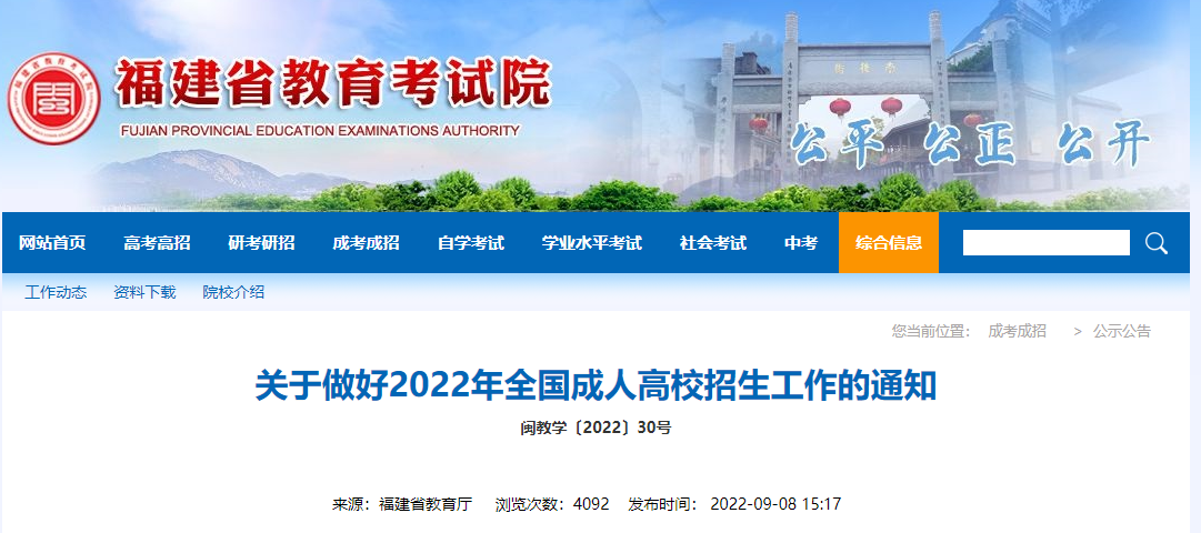 9月8日,福建省教育考试院发布《2022年福建省成人高等学校考试招生规定》,从招生规定中可以知道,福建省成人高考报名时间为9月13日至17日,考生可登录福建省教育考试院官网进行报名。其中部分内容如下: