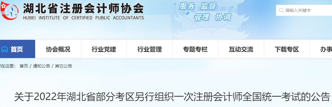 关于2022年湖北省部分考区另行组织一次注册会计师全国统一考试的公告