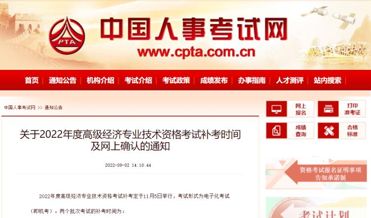 2022年度高级经济专业技术资格考试补考定于11月5日举行,考试形式为电子化考试(即机考)。两个批次考试的补考时间为: