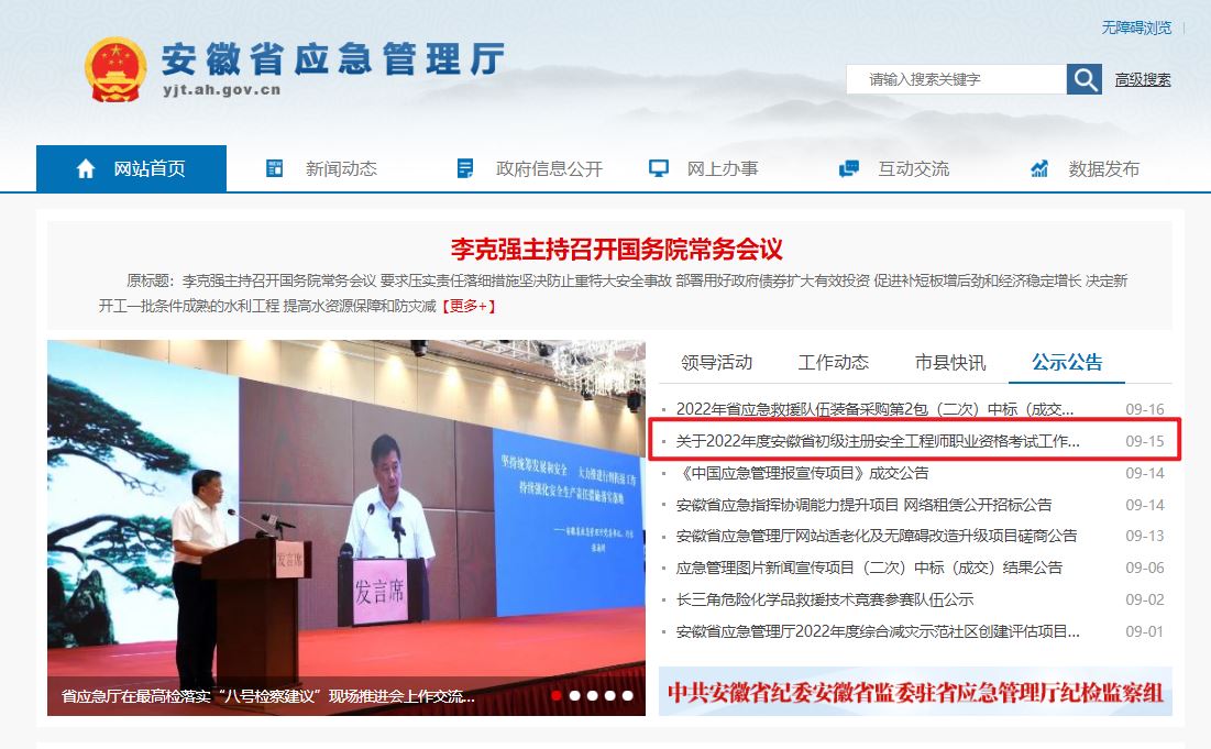 若想了解其他《关于2022年度安徽省初级注册安全工程师职业资格考试工作有关事宜的通知》的内容,可进入安徽应急管理厅网站查询。