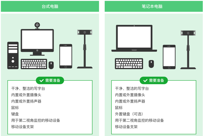 考生需自行准备符合以下要求的考试设备和考试环境。