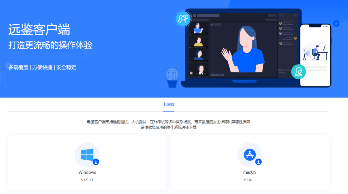 客户端适用于Windows或Mac OS操作系统,考生按照系统提示的步骤完成安装。客户端安装完成后,请在桌面打开“远鉴客户端”图标,即可进入考试系统。