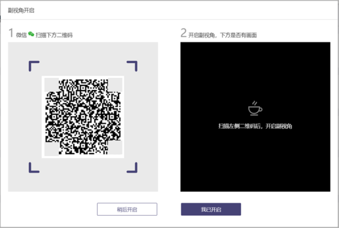 完成设备调试后,电脑端将显示开启副视角的步骤,请根据界面中的说明登录副视角监控。