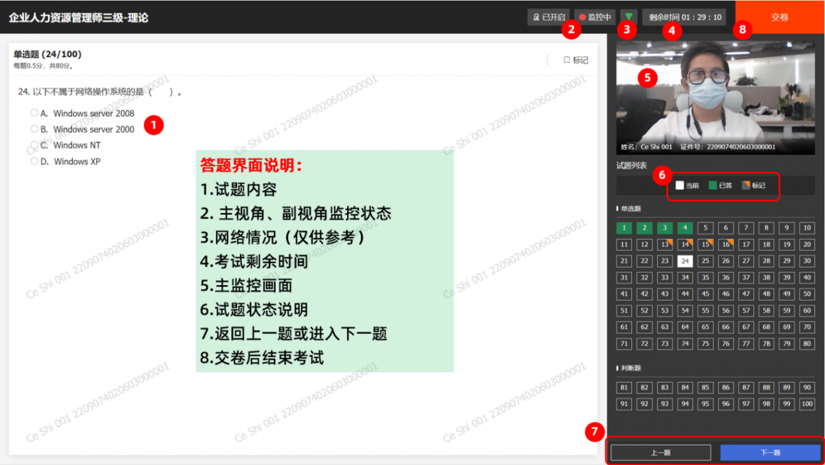 本文档内容仅介绍考试界面,详细的答题情况和说明等,请参照正式考试界面(图15)。