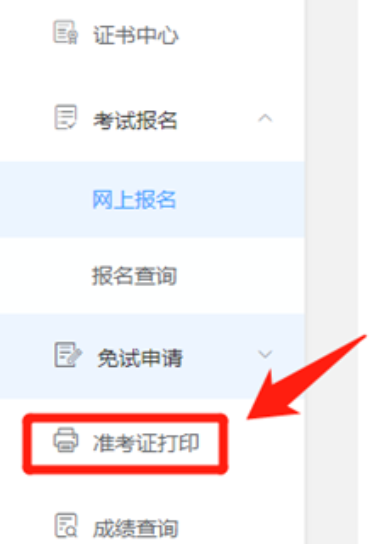2.点击左边栏的“打印准考证”选项,如图2所示。