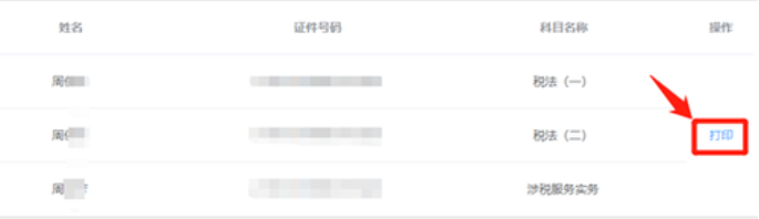 3.确认姓名、证件号和报考科目后,点击“打印”按钮,如图3所示。