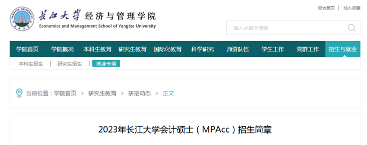 长江大学经济与管理学院网发布的《2023年长江大学会计硕士(MPAcc)招生简章》