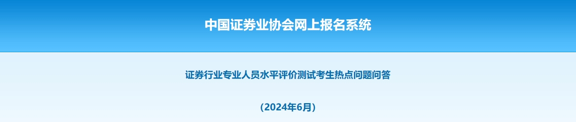 中国证券业协会网上报名系统近日更新《证券行业专业人员水平评价测试考生热点问题问答》(2024年6月),为报考2024年证券从业统一考试的考生解答了考试政策、报名事宜、考试复习资料等热点问题,提醒考生认真查看。