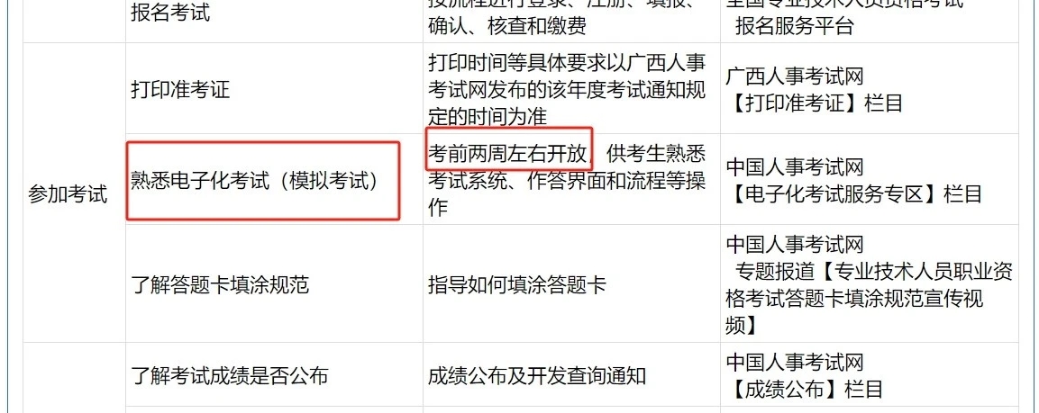 广西人事考试网《专业技术资格考试事项相关信息查询途径》中公布:电子化考试服务专区在考前两周左右开放。