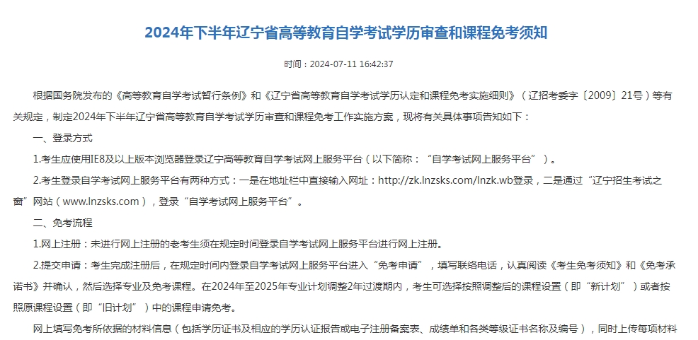 根据国务院发布的《高等教育自学考试暂行条例》和《辽宁省高等教育自学考试学历认定和课程免考实施细则》(辽招考委字〔2009〕21号)等有关规定,制定2024年下半年辽宁省高等教育自学考试学历审查和课程免考工作实施方案,现将有关具体事项告知如下: