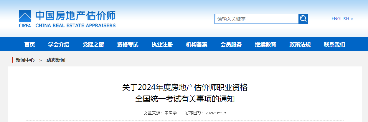 关于2024年度房地产估价师职业资格全国统一考试有关事项的通知