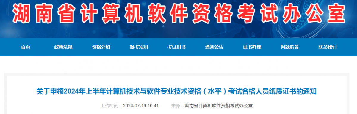 关于申领2024年上半年计算机技术与软件专业技术资格(水平)考试合格人员纸质证书的通知