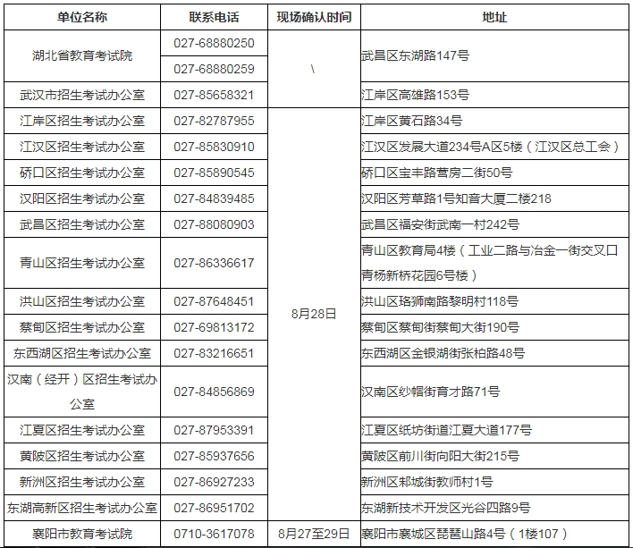 七、报名咨询电话(8月22日至29日)及现场确认信息